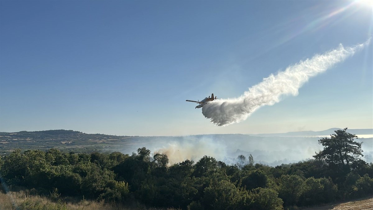 Çanakkale'nin Lapseki ilçesinde tarım arazisinde çıkan yangın ormana sıçradı. Ekipler, alevlere havadan ve karadan müdahale ediyor.