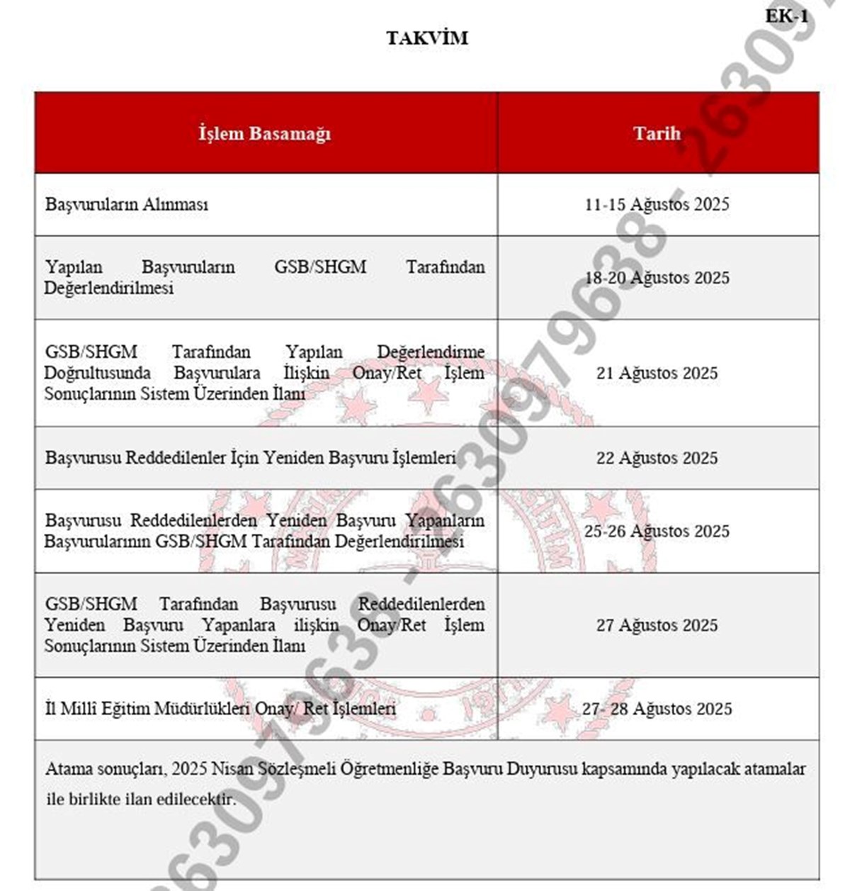 Millî Eğitim Bakanlığına bağlı resmî eğitim kurumlarının beden eğitimi alanında öğretmen ihtiyacının karşılanmasına yönelik olarak Sözleşmeli Personel Çalıştırılmasına İlişkin Esaslar kapsamında, 19 kontenjana millî sporculardan sözleşmeli öğretmen ataması yapılmak üzere duyuru yayımladı. Peki, sözleşmeli beden eğitimi öğretmen alımı başvuruları ne zaman başlayacak?Milli Eğitim Bakanlığına bağlı resmi eğitim kurumlarında beden eğitimi öğretmeni ihtiyacının karşılanmasına yönelik 19 milli sporcu, sözleşmeli öğretmen olarak atanacak. 2025 Yılı Millî Sporculardan Beden Eğitimi Alanına Sözleşmeli Öğretmen Atama İşlemi Duyurusu ile sürecin ayrıntıları paylaşıldı.Bu kapsamda, başvurular 11-15 Ağustos 2025 tarihleri arasında alınacak.Başvurular öncelikle Gençlik ve Spor Bakanlığı Spor Hizmetleri Genel Müdürlüğünce 18-20 Ağustos 2025 tarihleri arasında değerlendirilecek.MİLLÎ SPORCULARIN BEDEN EĞİTİMİ ALANINA SÖZLEŞMELİ ÖĞRETMEN OLARAK ATAMA DUYURUSUGençlik ve Spor Bakanlığı Spor Hizmetleri Genel Müdürlüğünce uygun görülen başvurulara ilişkin bilgiler ile adayın sisteme yüklediği belgeler, 27-28 Ağustos 2025 tarihleri arasında il millî eğitim müdürlüklerince incelenerek uygun olan başvurular onaylanacak.Atama sonuçları, 2025 Nisan Sözleşmeli Öğretmenliğe Başvuru Duyurusu kapsamında yapılacak atamalar ile birlikte ilan edilecek.